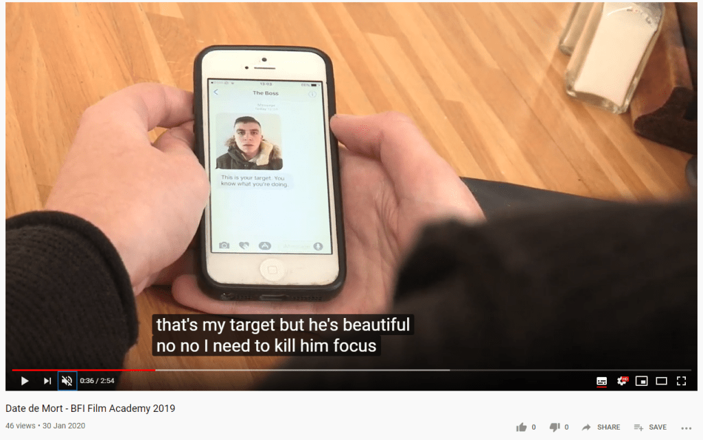 In the opening, Dillon’s character Jean Pierre, receives a photo of John ‘the target’ from his Boss. We had to orchestrate when to send these texts so that the image and then the text appeared when the phone was in shot. This took a few attempts.